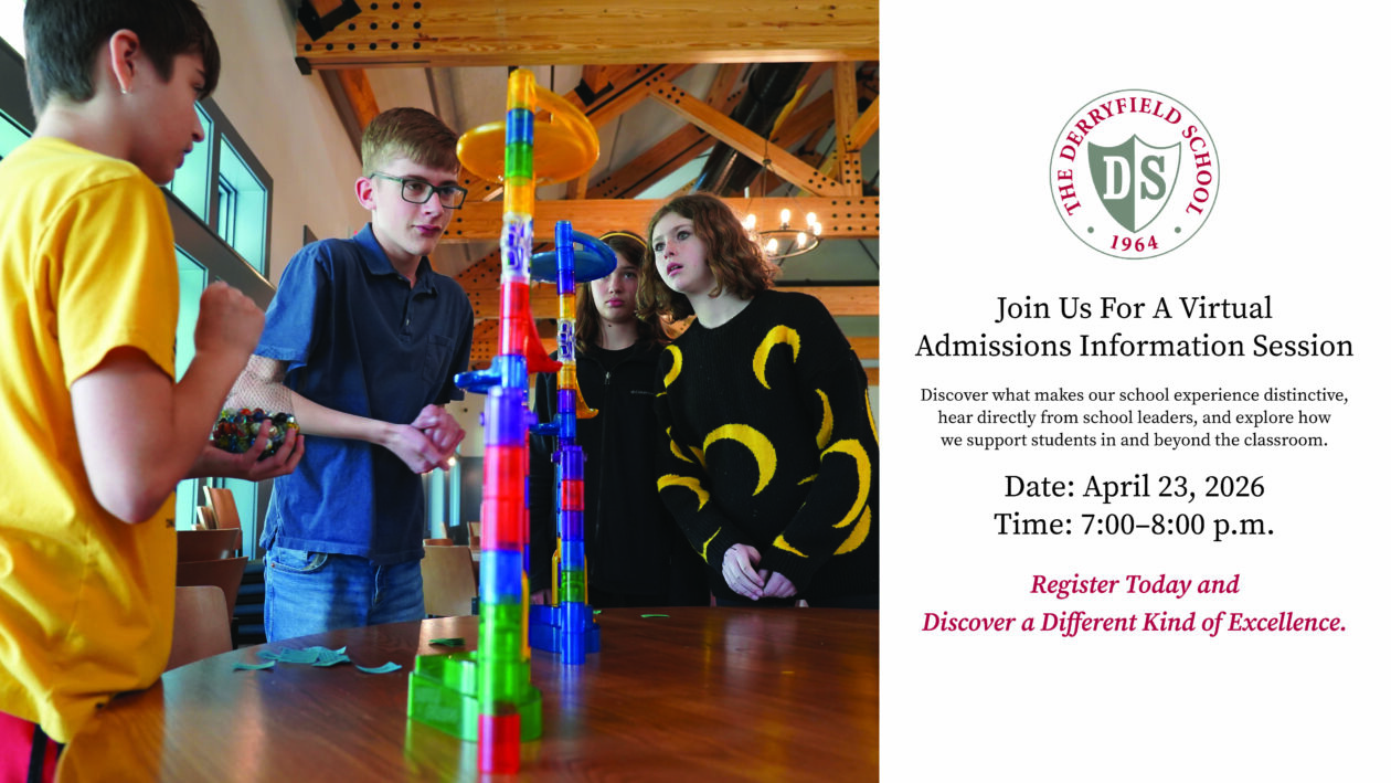This range of stories about Derryfield students, faculty, and alumni is as diverse each student's path through the school. Derryfield offers the challenges and outcomes of the finest independent schools in a program designed to help students find and direct their passions toward personal bests. At Derryfield, students go beyond the importance of doing their best. They discover the joy in becoming their best.