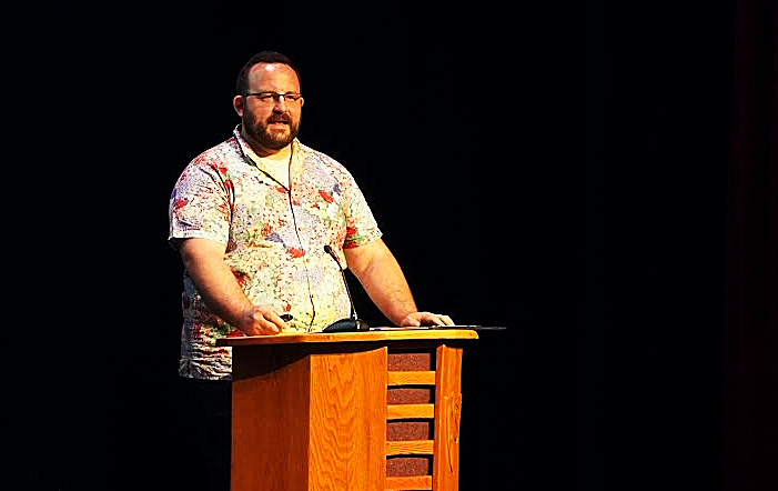 Joe Acone, chair of the Arts & Design Department at Derryfield, commenced his presentation at the September 2 Community Meeting by challenging the audience to consider “What is the last creative thing you made?” then noted, “Whatever it was, that act of making is what connects us.”