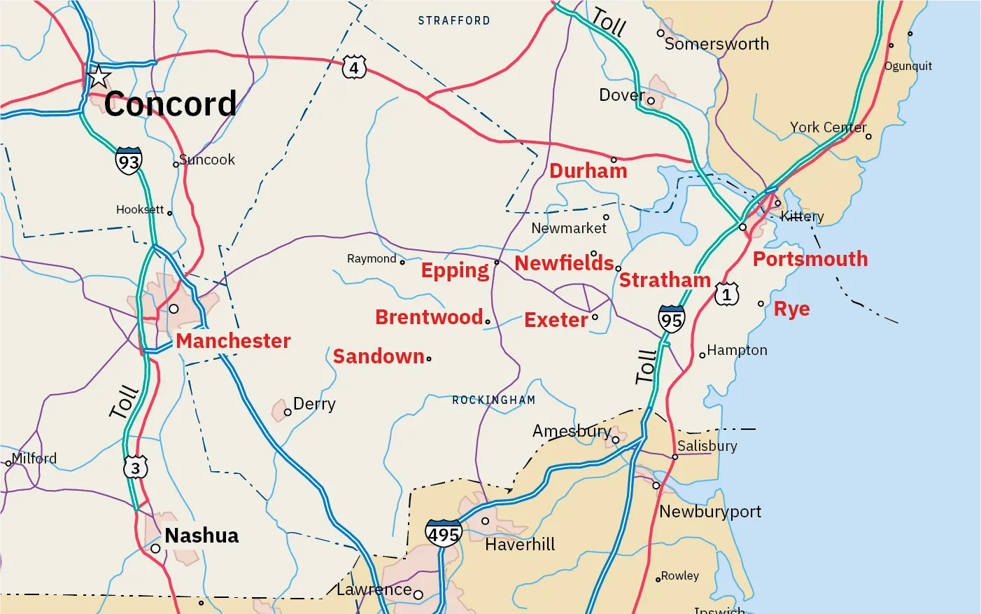 Portsmouth • Rye • Sandown • Newfields • Stratham • Epping • Exeter • Brentwood • Durham